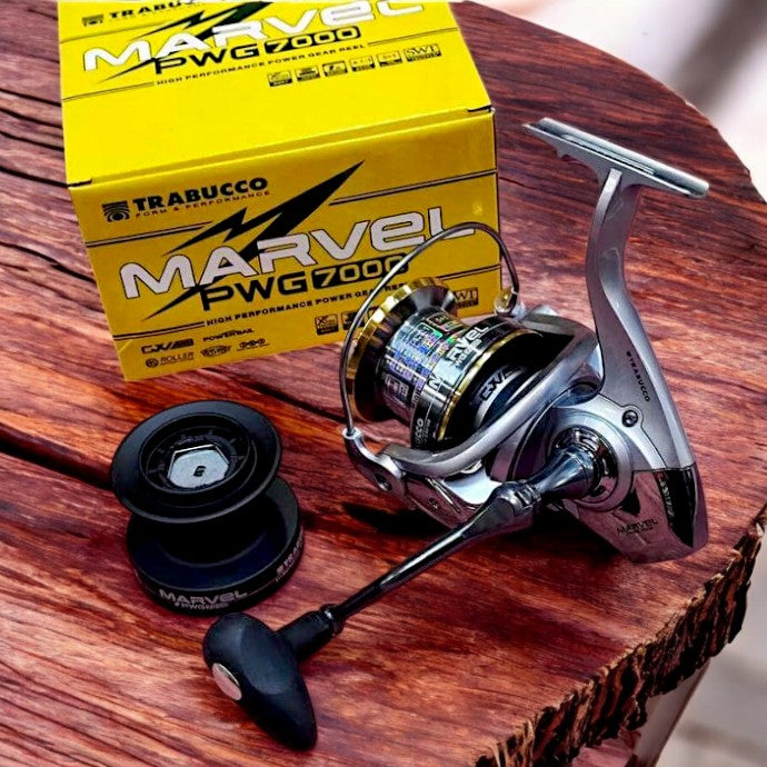 Il Trabucco Marvel PWG è un mulinello potente e affidabile, progettato per affrontare le tecniche marine più impegnative come surfcasting, bolentino e spinning pesante. Disponibile nelle misure 6000 e 7000, offre fluidità, resistenza e controllo in ogni situazione.