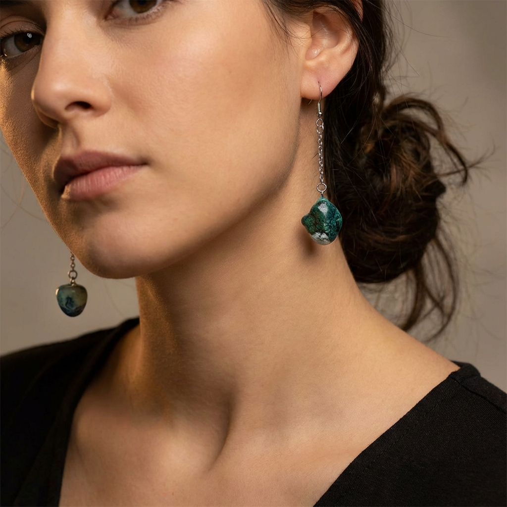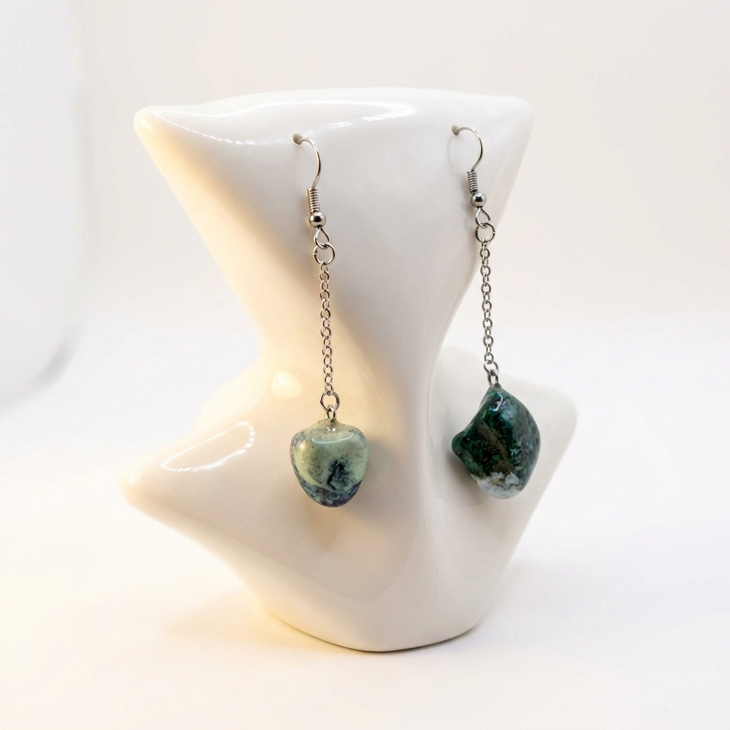 Orecchini Pendenti Artigianali con Pietre Naturali della Valsesia – Incontro di Acqua e Bosco